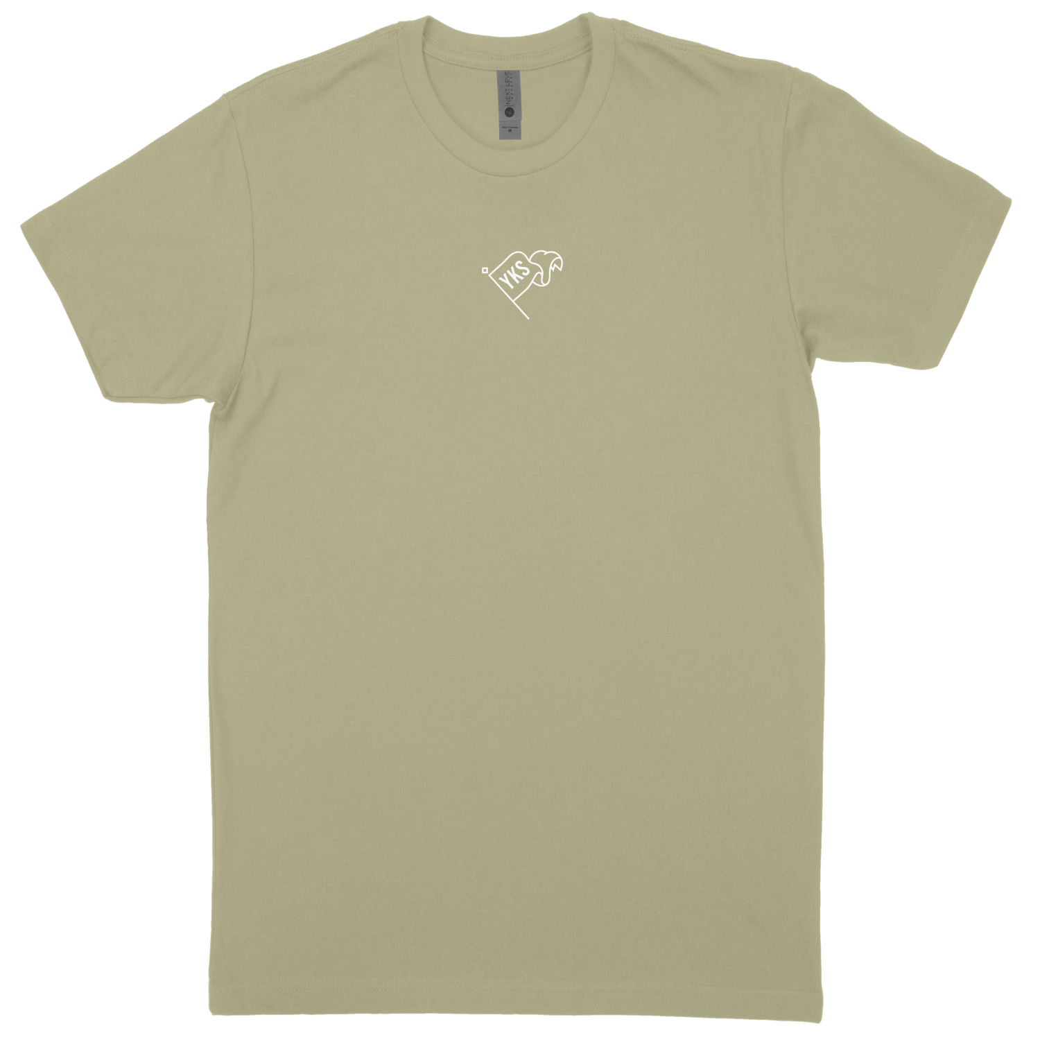 Printed on a Next Level 6210 shirt (60/40 blend) in “Light Olive” with water-base ink for a super soft feel. This is the same male cut tee that 95%+ of our t-shirts have been printed on in the last 5 years.